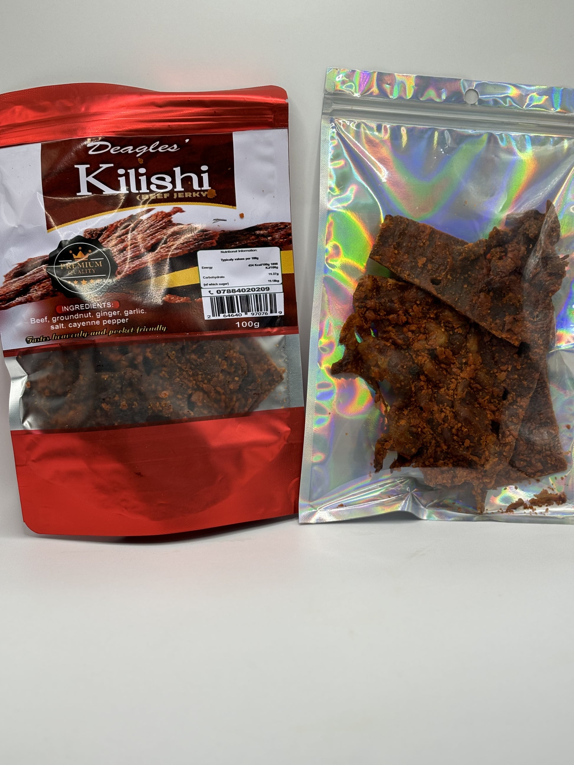 Kilishi is a spicy, dried meat snack from West Africa, similar to jerky. Made from thinly sliced beef or goat, it is marinated in a mixture of spices and ground peanuts before being sun-dried and grilled. Kilishi is known for its intense flavor and long shelf life, making it a popular snack across the region.